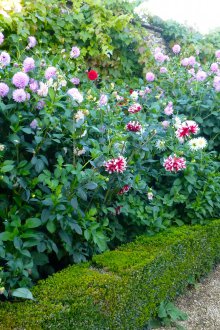 수풀의 높이에 따라 왜소, 기절, 중간 키 및 키가 큰 식물이 구별됩니다. 또한 거대한 다년생 달리아가 있습니다. 그들은 주로 지지대와 함께 근처에 심어 져 있습니다.